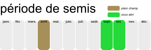 Semer clair en ligne en avril pour une récolte au début de l'été. Semer en septembre à octobre sous abris pour une récolte hivernale. Couper dès que les feuilles atteignent une dizaine de centimètres.